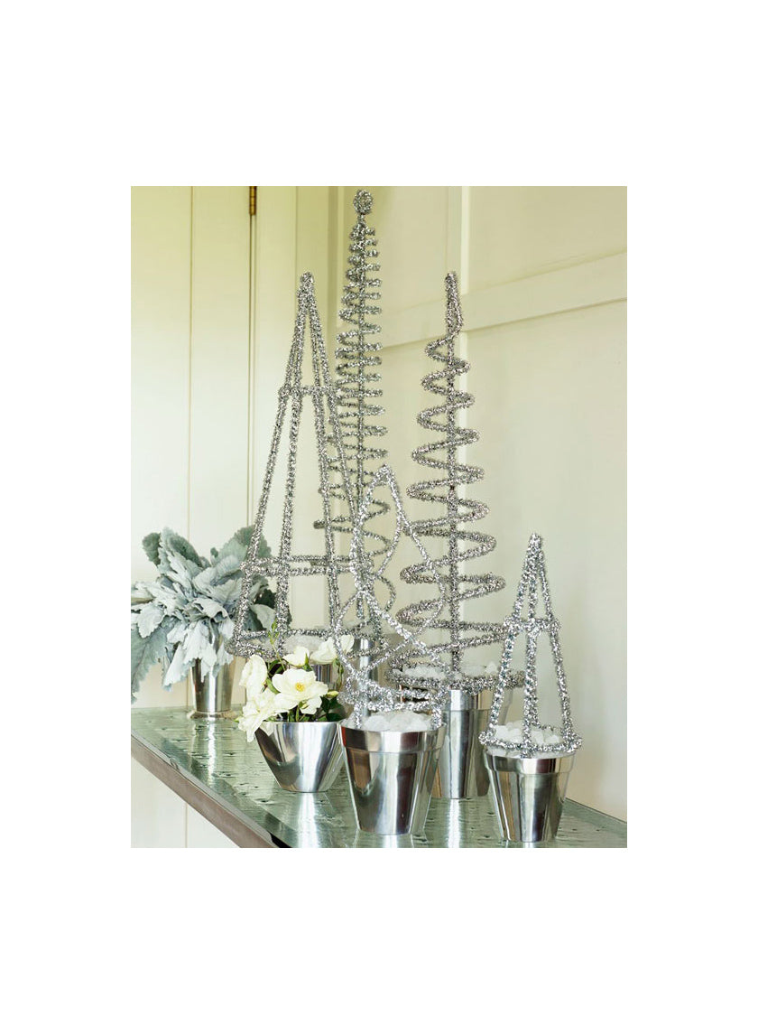 To create a silver holiday display, our Polished Aluminum Pots are topped with a mix of silver tinsel trees. Also shown in this holiday issue of Better Homes and Gardens, is our 4in Almond Vase with white cosmos, and our similar Silver Julep Cup with Dusty Miller.