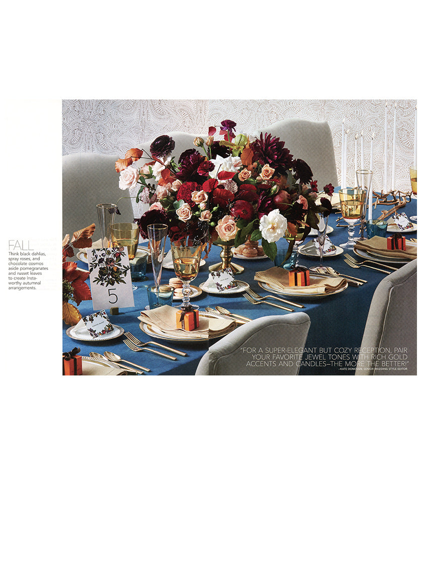 A TABLE FOR EVERY SEASON: In the April/May 2016 issue of BRIDES the stunning reception ideas by season include our silver and brass bowls. Our Silver Pedestal Bowls are featured in 'SUMMER': 'Mix and match patterns in classic hues to amp up the chic factor. Unexpected centerpieces like bundles of muscari blooms and bowls of lemons complete the look.'