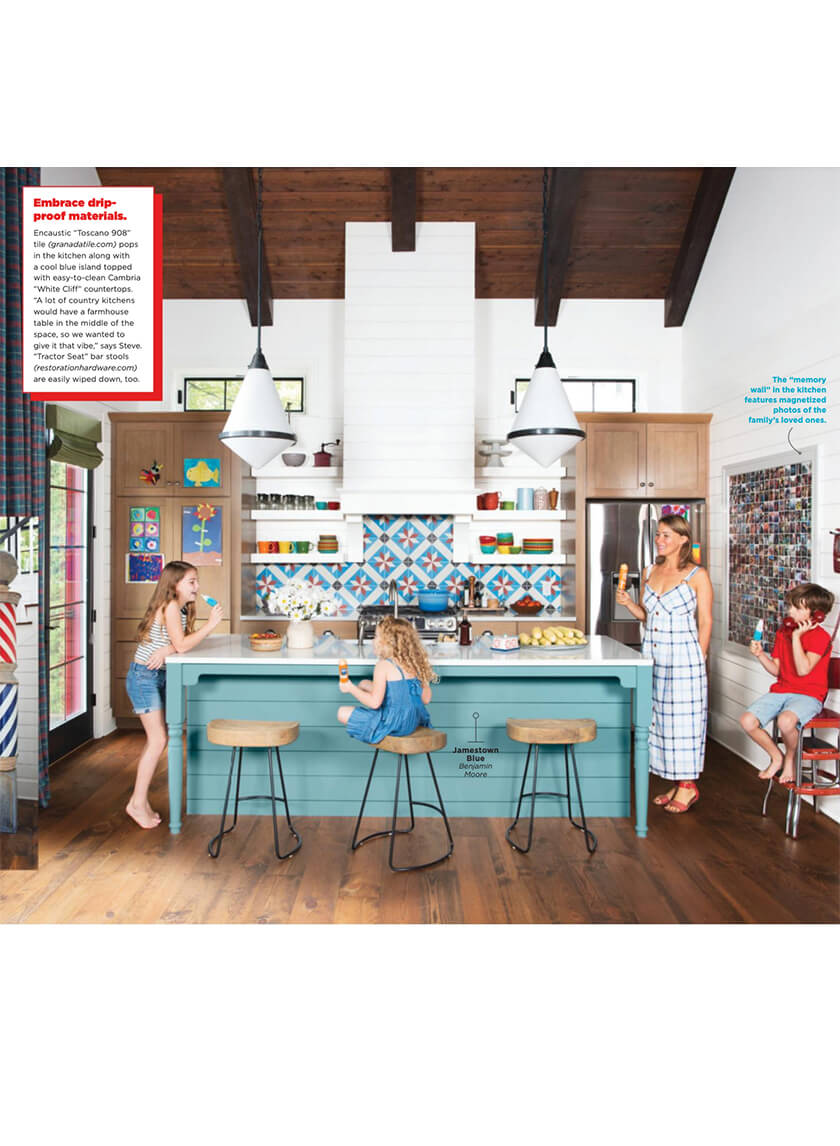 It's 'Good Vibes Only' in this story from the Country Living June 2020 issue. Peek into the kitchen of this house on Michigan's Magician Lake and spot our teak tray used on the kitchen counter; a little organizer for often used condiments like salt and pepper, a sugar bowl, and small bottles of olive oil and balsamic vinegar.