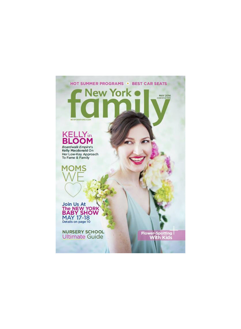 Actress Kelly Macdonald, from HBO's Boardwalk Empire, sports our faux flowers as a capelet on the cover of the May 2014 New York Family.Click on the image to see all photos from this story.