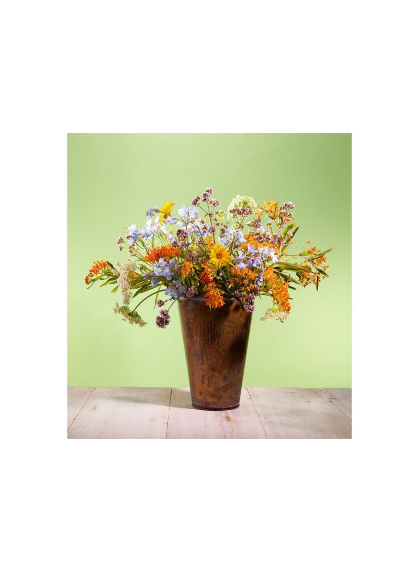 A Flower Arrangement Inspired By A Gauguin Painting: Floral designer Lindsey Taylor channels the lazy, hazy sensuality of a Post-Impressionist classic for The Wall Street Journal. WHILE ESCAPING the summer swelter in the galleries of Manhattan's Metropolitan Museum of Art, she came across "The Siesta," a painting by the French Post-Impressionist Paul Gauguin. The arrangement in our Antique Brown Bucket includes Native Butterfly Weed, Larkspur, Oregano In Bloom, Queen Anne's Lace, and Yellow Coreopsis.