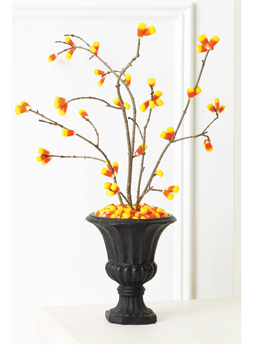 'Ear Buds' and 'Corn Ball' from Woman's Day, October 17, 2010, are two great candy corn decorating ideas for Halloween, using our black polyresin urns. Get the how-to.