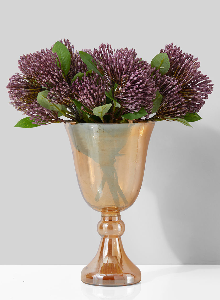 10in Tall Amber Luster Glass Pedestal Vase- Regular price