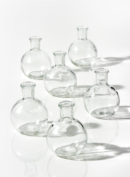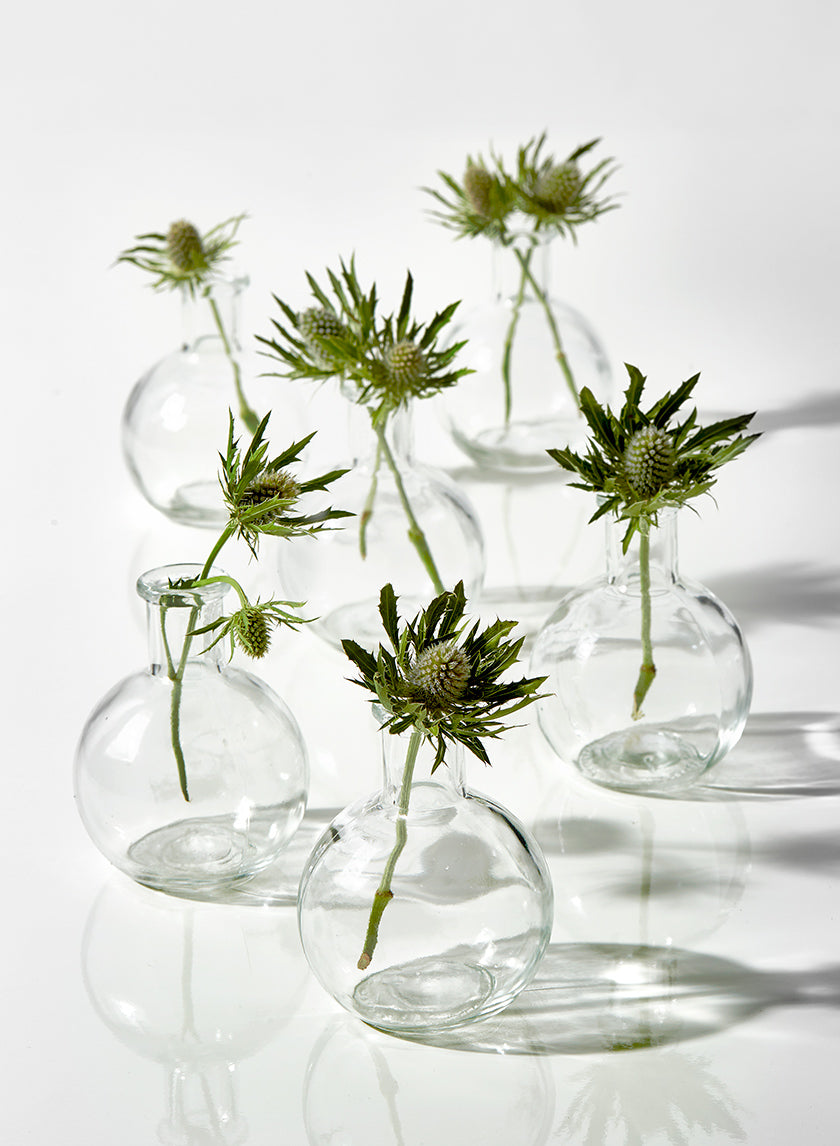 Miniature flower vases create the perfect opportunity to over-accessorize an event without going over the top. The unassuming appearance of this 4-inch ball bud vase does exactly that for any of your events. It's easy to display all six of these round bud vases on long tables, atop foyer cabinets, in tray arrangements, and even in outdoor settings.