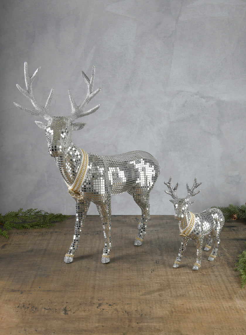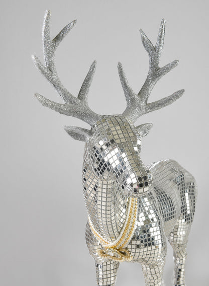 This captivating decorative piece features a deer silhouette with intricate mirror mosaic detailing that catches and reflects light beautifully, creating a shimmering, magical effect. Its elegant design and compact size make it perfect for adding a touch of sophistication to mantels, shelves, or table centerpieces.