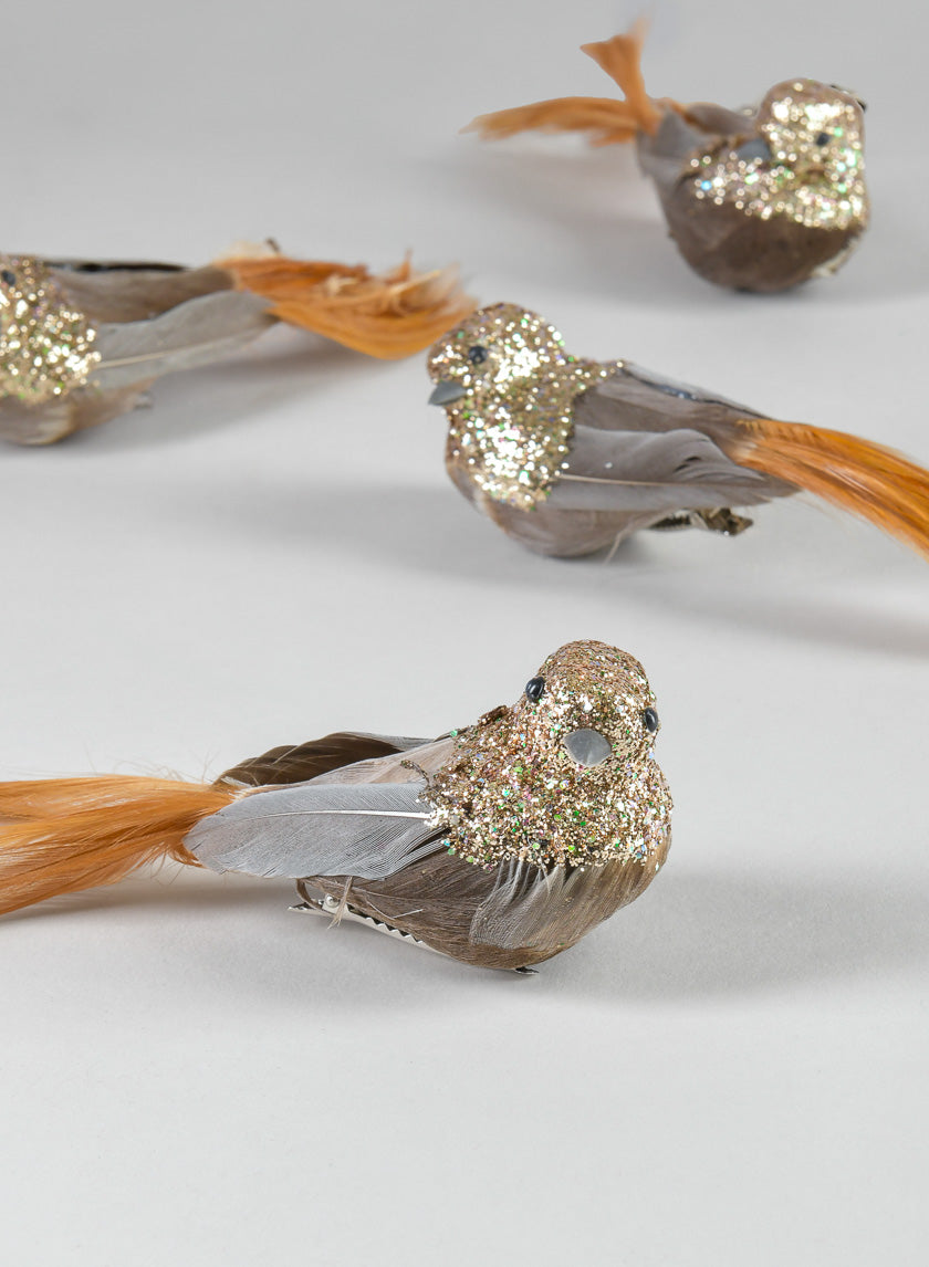Each bird has a sprinkling of champagne and fine gold glitter on its back and head, which sparkles cheerfully in the light. A must-have addition that combines glitz with the beauty characteristic of woodlands.