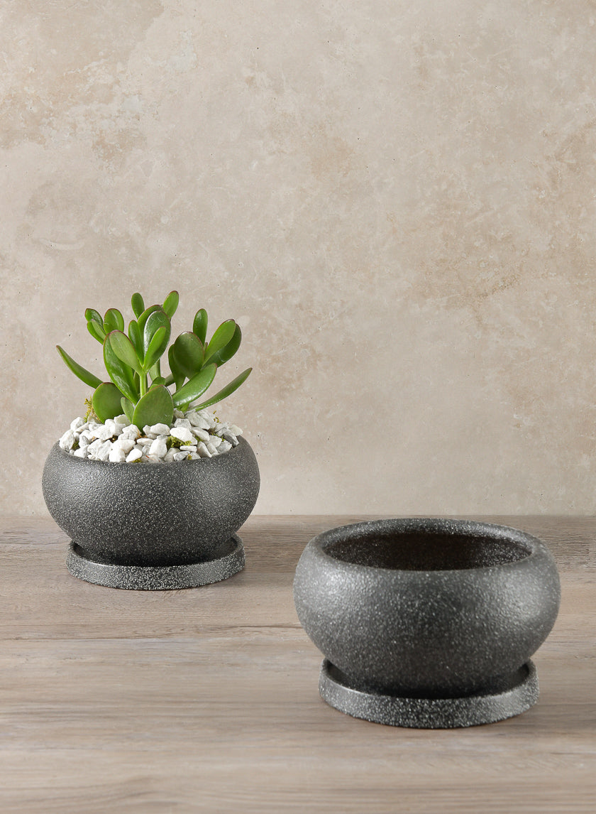 Rolled Rim Clay & Ceramic Planter, Mesquite Black- Regular price