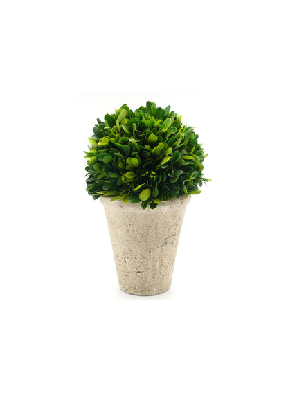 With its lush appearance and deep green hue, you'll love the natural appeal of our preserved boxwood ball. Displayed in a marble-like pot, these ball topiaries are crafted from genuine, preserved boxwood. The deep green color brings a spring-like quality wherever you showcase this piece, whether as an accent at your elegant wedding or a centerpiece for your summer dinner party. You can choose our charming 4in boxwood ball in a pot or our stately 7in option. We recommend our boxwood decoration for indoor use only. Also, keep away from direct sunlight. Spray the leaves once a month to keep your boxwood looking fresh.