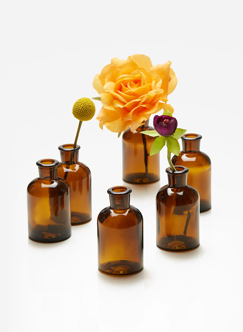Weddings today are trending away from the more traditional aesthetics and toward fun, whimsical decorations with lots of color, texture, and fun accents. Pair your 4-inch dark amber glass bud vases with a variety of other glass bud vases of various shapes and styles to create a simple, eclectic wedding centerpiece.