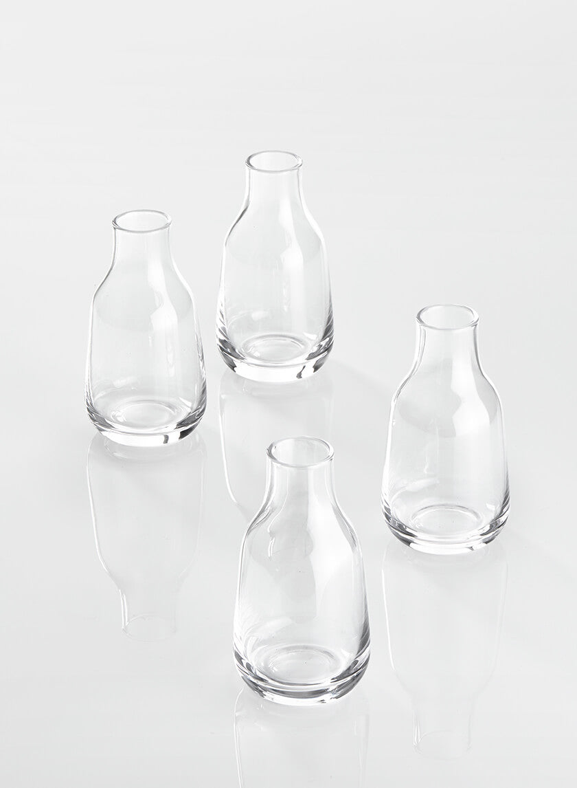 3.5in Tall Tiny Bottle Bud Glass Vase, Set of 4