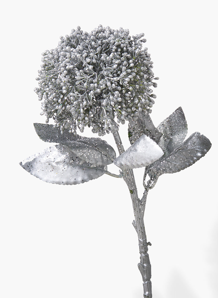 9in Long Glittered White Magnolia Pick, Case of 48- Regular price