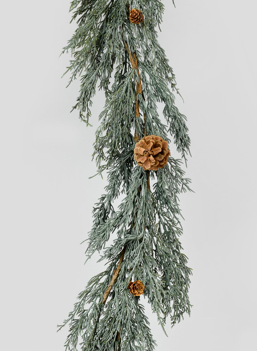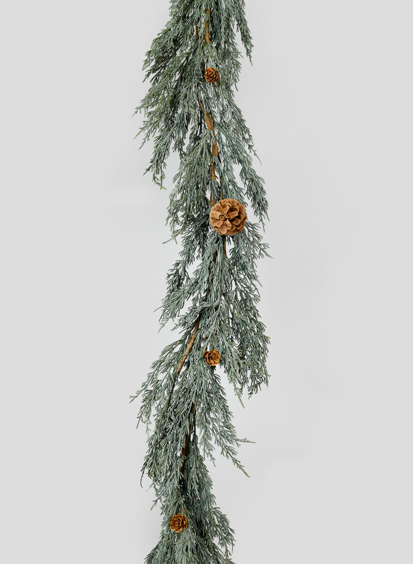 76in Long Blue Cypress Garland with Pine Cones