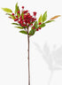 If you're looking to incorporate some classic holiday colors into your decorations, you'll love the natural feel of our red berry and green leaf pick. This festive branch has a loose arrangement of red berry blossoms flanked with light and dark green-colored leaves. The branch includes details that give it a realistic look, such as rust-colored tones on the leaves that provide a slightly aged appearance.