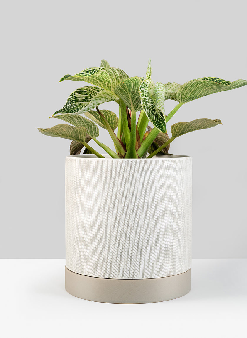 Rimmed Bowl Clay & Ceramic Planter, Yucatan Stone White