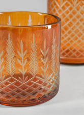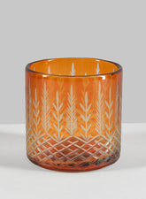 4in Tall Almira Palm Amber Cut Work Cylinder Glass Candleholder