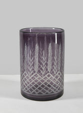 6in Tall Almira Palm Smoke Gray Cut Work Cylinder Glass Vase