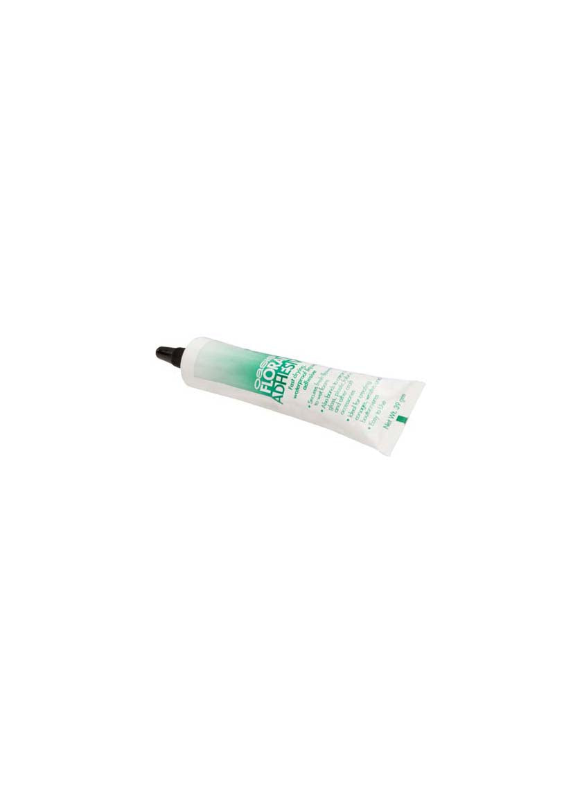 Fast-drying and waterproof liquid adhesive formulated for use with fresh flowers. Bonds quickly, safely and easily. Provides a time-saving alternative to wiring and taping, especially with corsages. Special formulation will not brown fresh flower petal. Holds in cold conditions. Comes in a 39 gram tube.