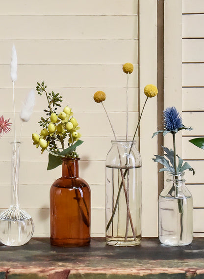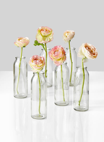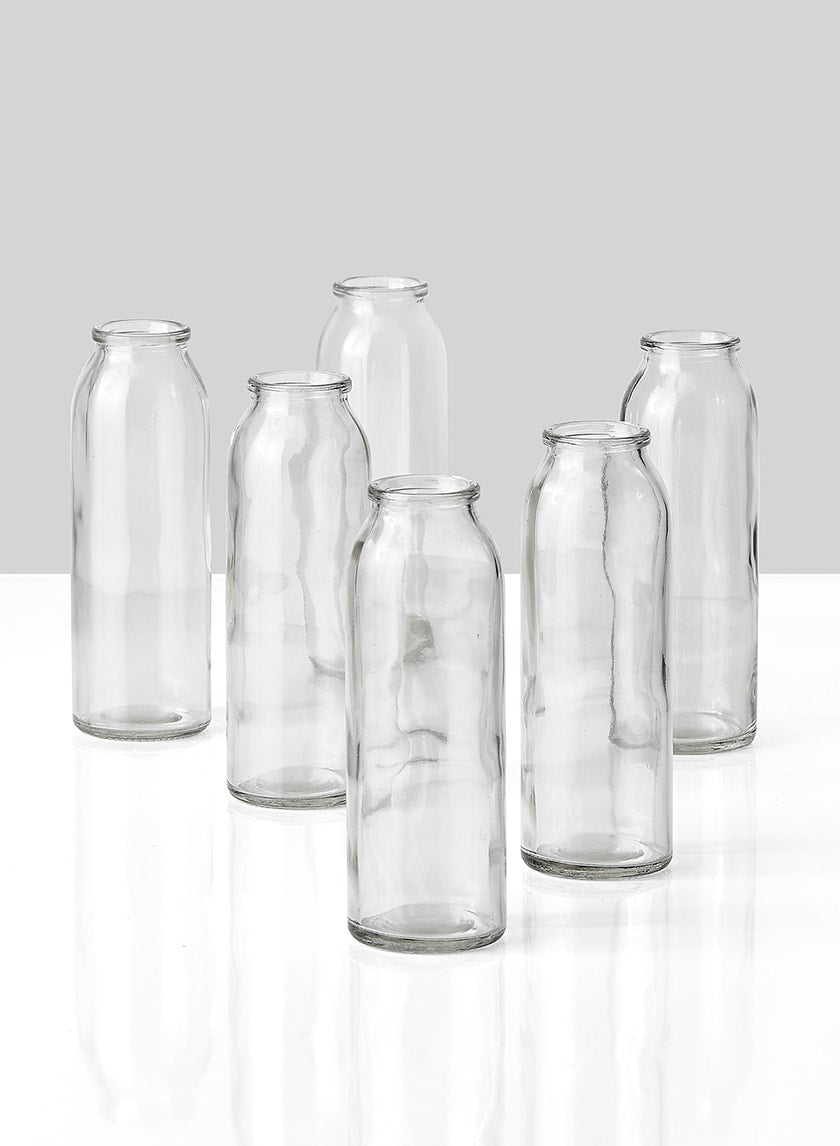 Whether you'll be planning a shower, corporate gathering, or wedding reception, these glass bottle vases are sure to be the highlight of your tabletop displays. These gorgeous vases measure 2 inches in diameter and are 6 1/4 inches high, offering the perfect size for tall flowers or greenery.