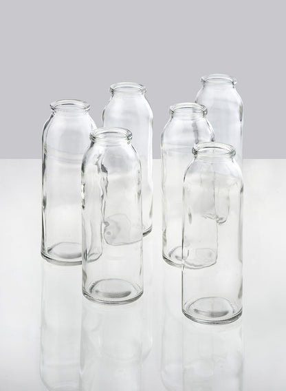 Whether you add freshly handpicked flowers to create some farmhouse charm or pair them with luscious red roses for a romantic touch, these versatile bottles will be a staple design element you'll find yourself using time and time again. Because each order comes with a set of six, you'll have plenty of glass bottles to decorate your venue with.