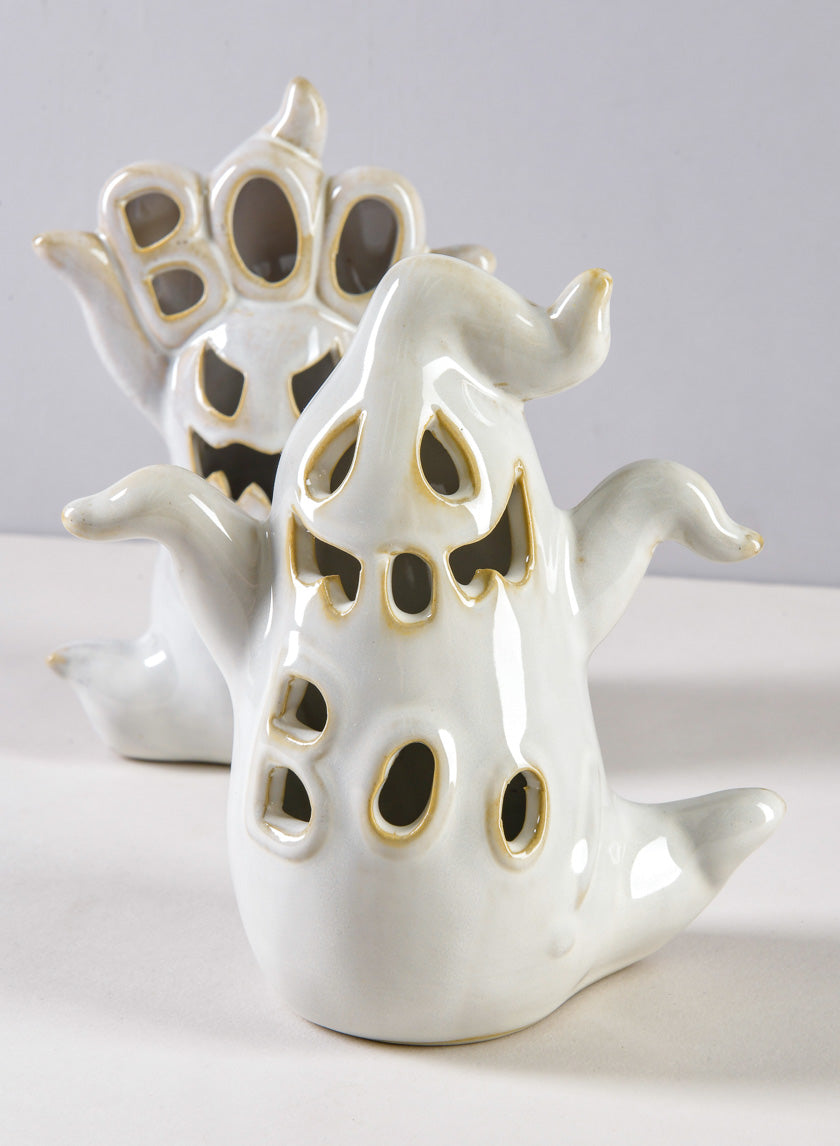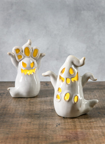A delightful and whimsical addition to any space, the Spooky Porcelain Mini Ghost with LED Light will provide a touch of eerie fun while also illuminating it. The gentle illumination of the LED light filtering through their funny cutout faces will set a cozy, eerie mood at night.