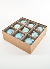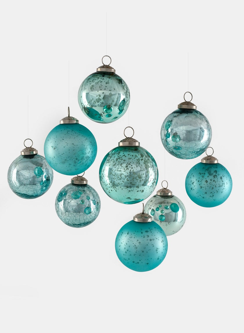 3in Round Teal Mix Glass Ornament Balls, Set of 9