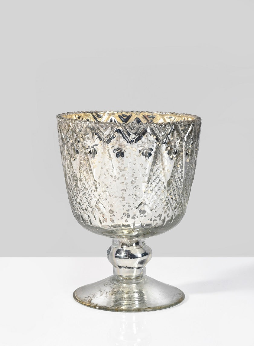 4.25in Tall Vintage Mercury Glass Pedestal Votive, Set of 6