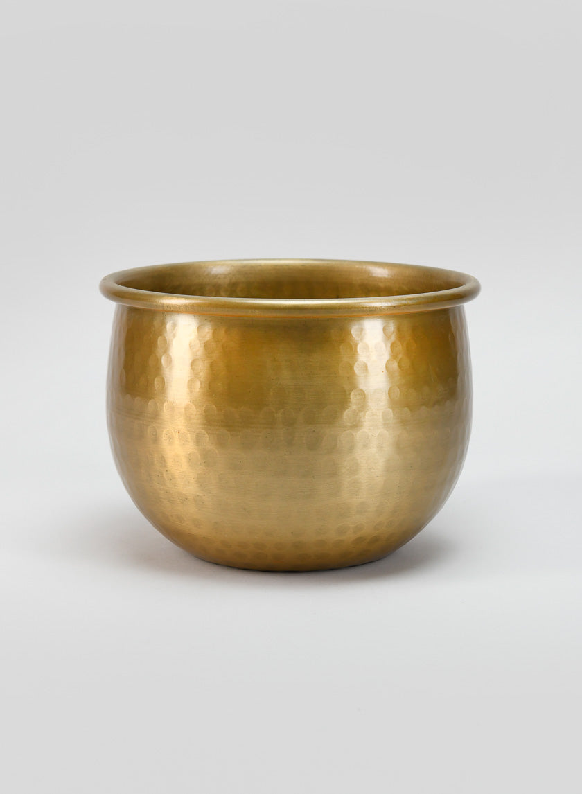 9in Wide Devdas Brass Look Aluminum Indoor Garden Pot, Medium