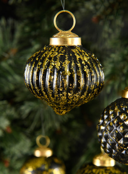 2.5in Wide Black Gold Antique Glass Ornaments, Set of 12