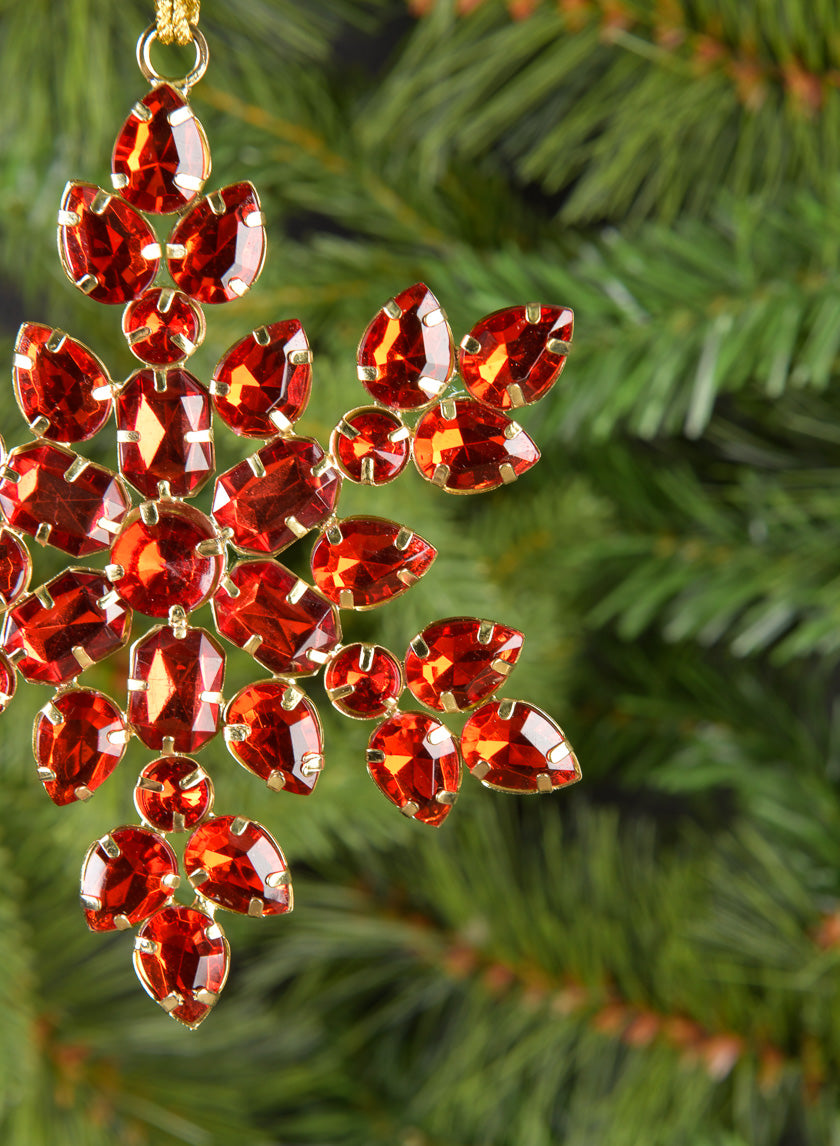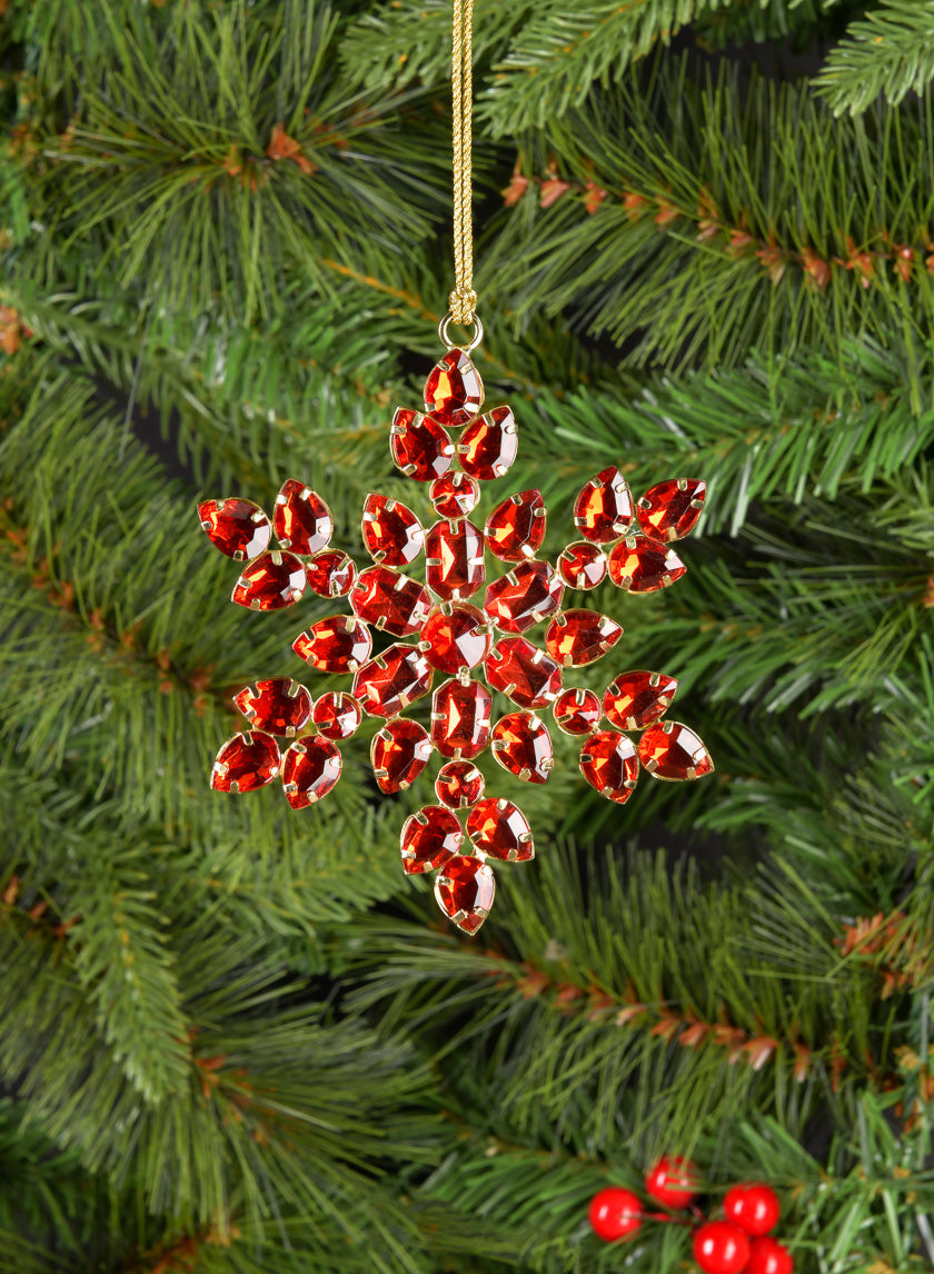 4in Wide Acrylic Red Stone Hanging Plastic Snowflake Decor Jamali Garden