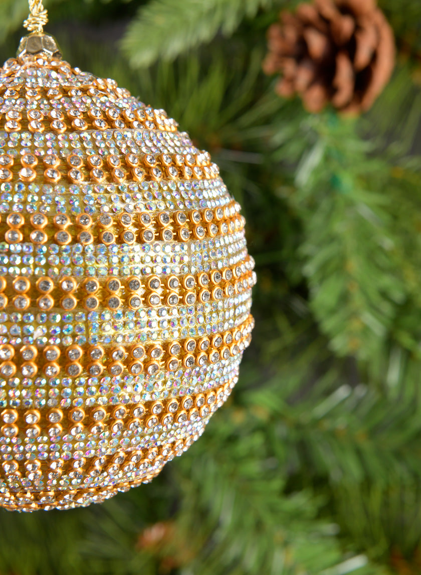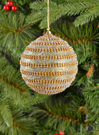 3.5in Round Dual Tone Crystal Bead Plastic Ornament