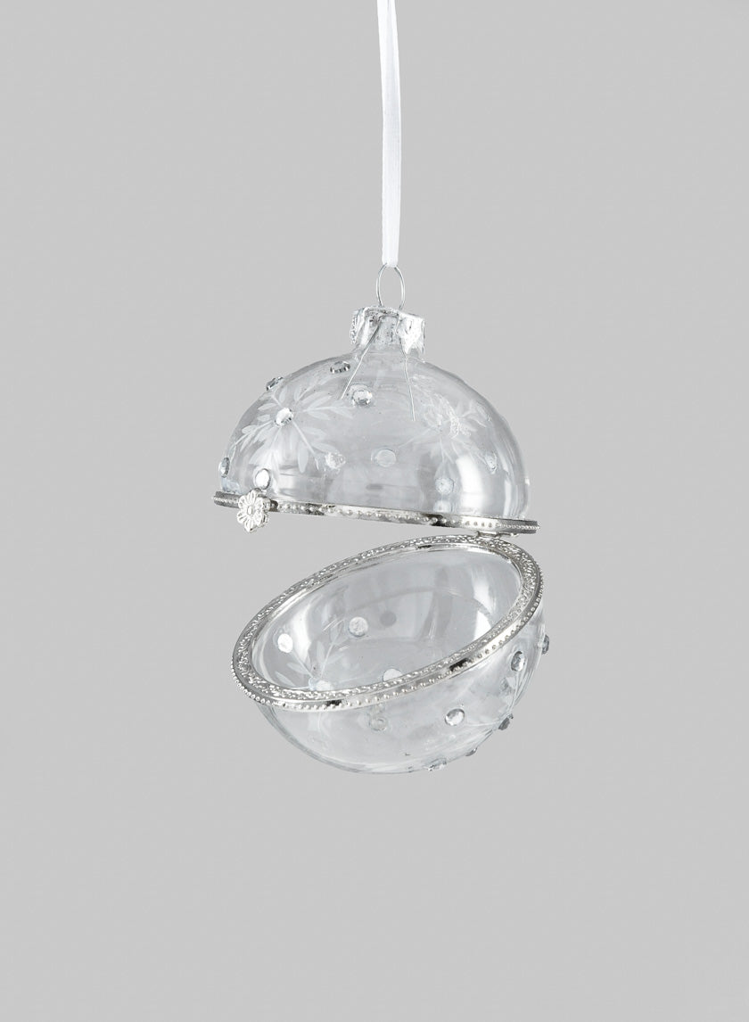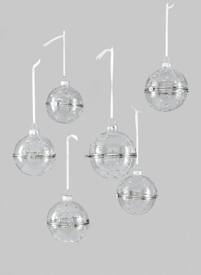 2.5in Round Diamond Bead Treasure Ball Glass Ornament, Set of 6