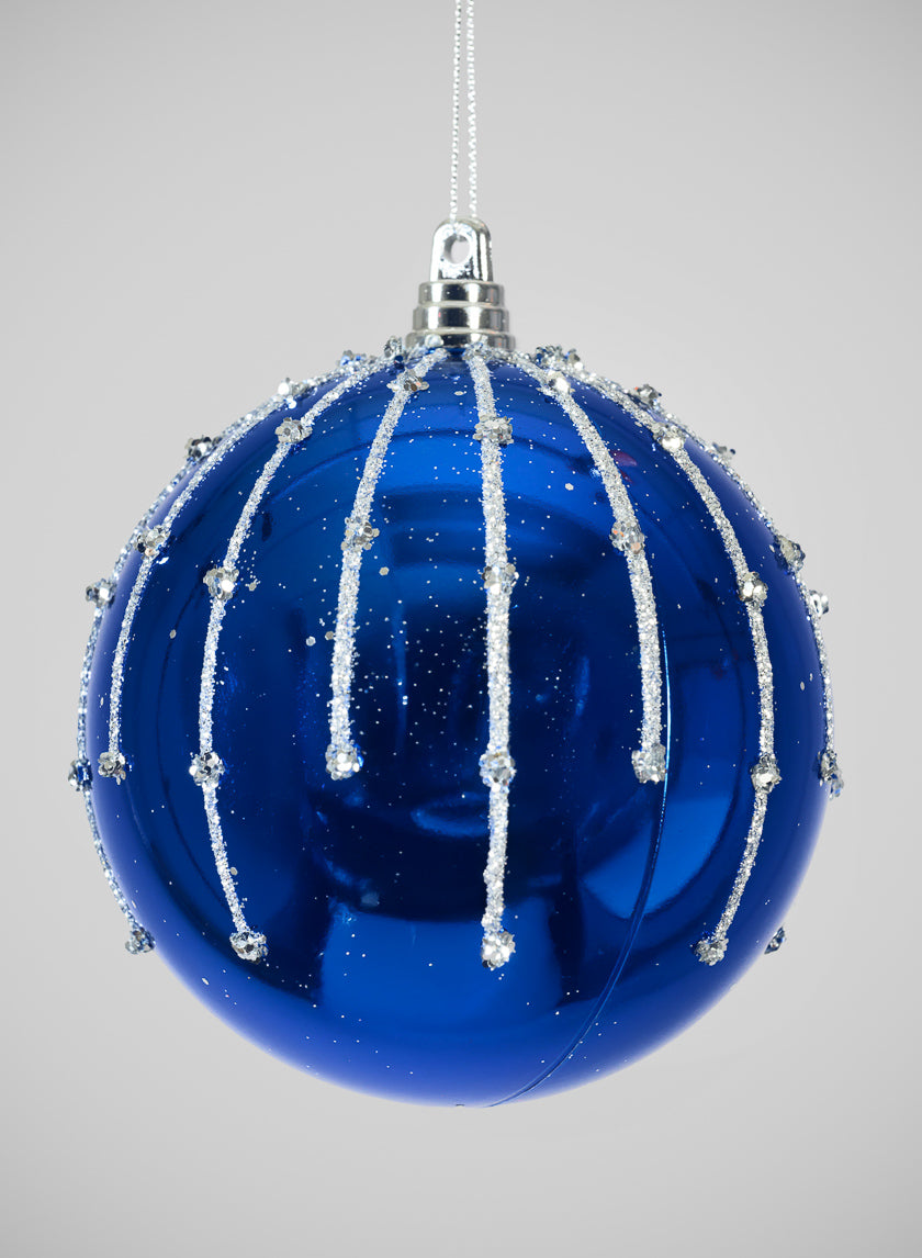 4in Round Silver Dust Lined Cobalt Blue Plastic Ornament Ball- Regular price