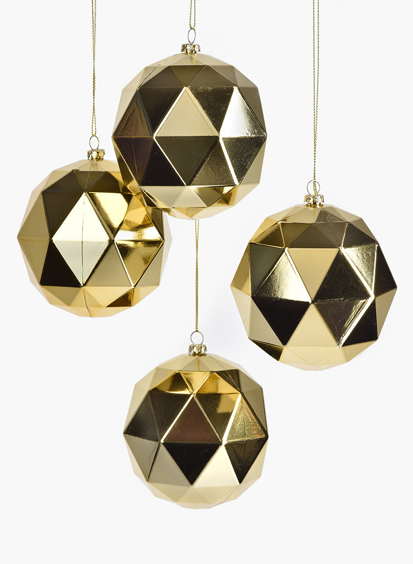 4in Round Gold Diamond Dimple Glass Ball Ornament