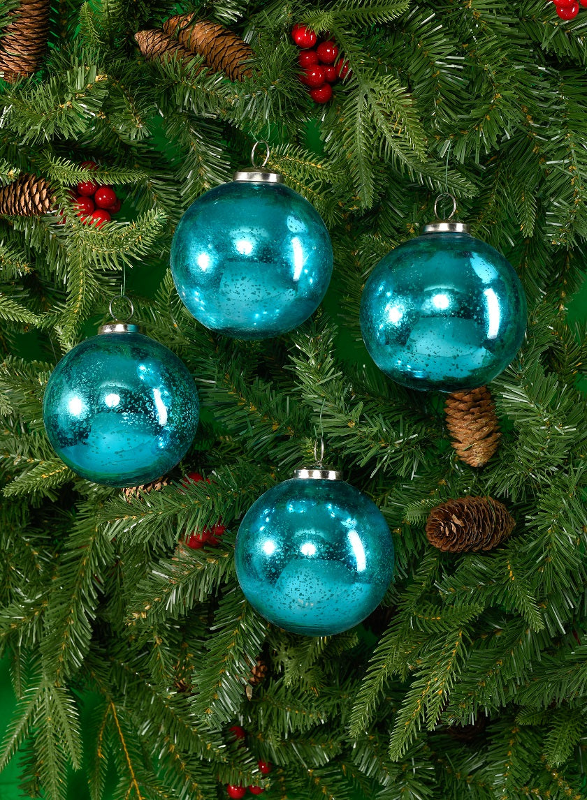 3in Round Teal Mix Glass Ornament Balls, Set of 9