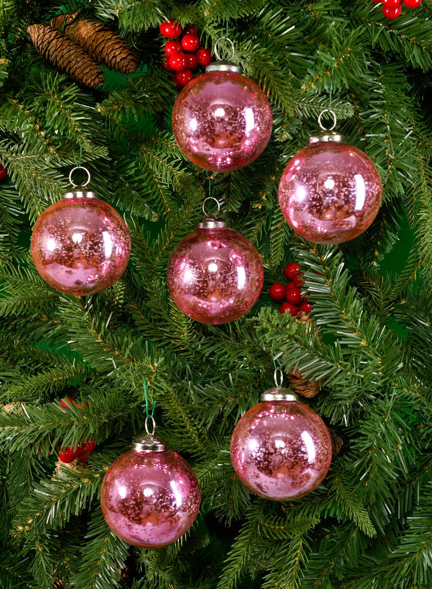 3in Round Matte & Shiny Pink Plastic Ornament Balls, Set of 6- Regular price