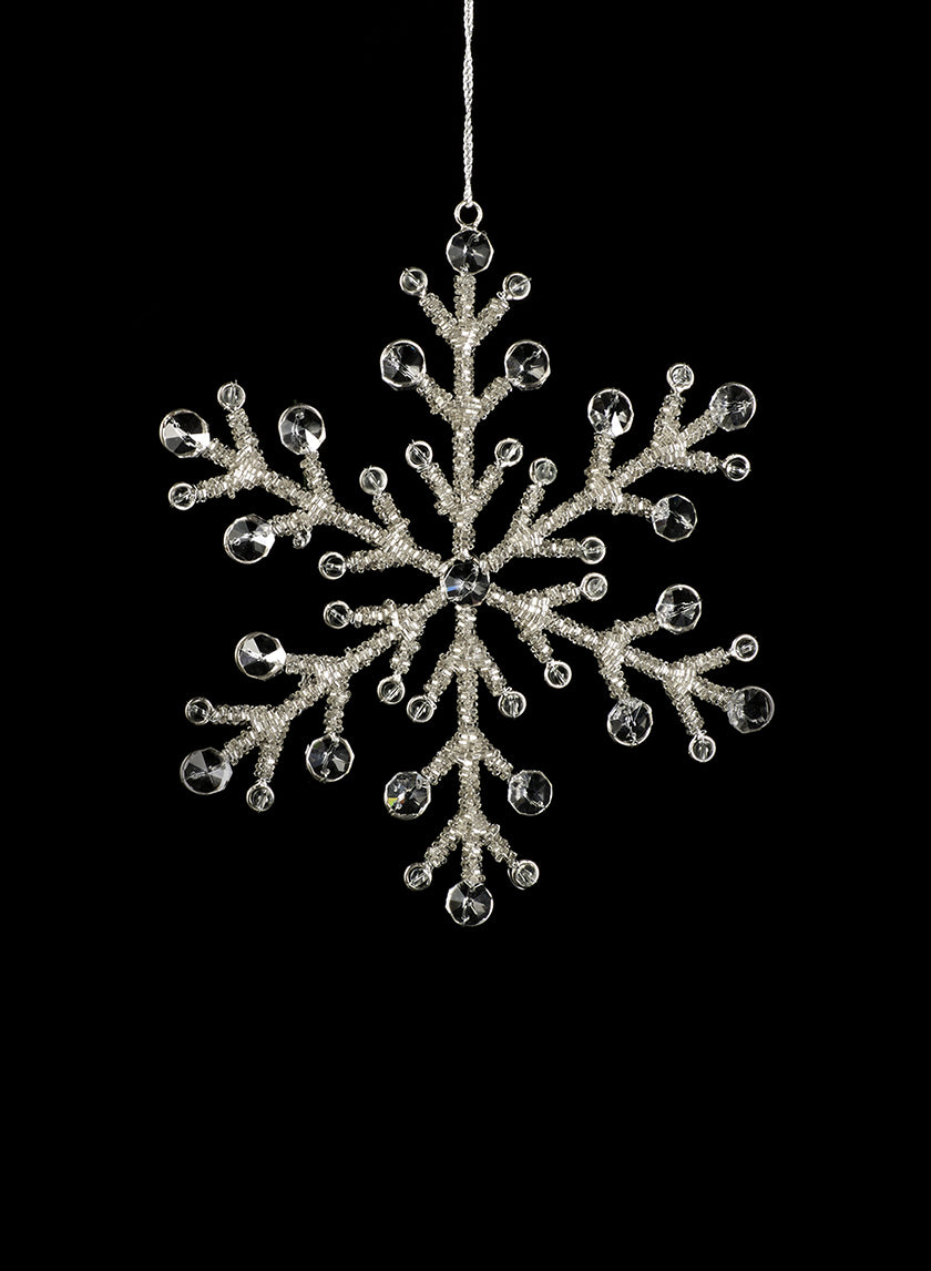 6in Wide Beaded Plastic Snowflake Amber, Set of 6- Regular price