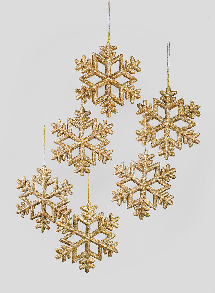 7in Wide Champagne Glitter Snowflake Ornament, Set of 6- Regular price