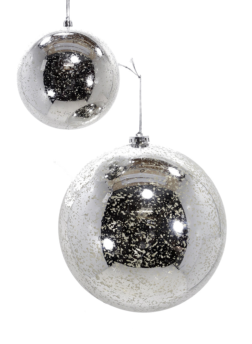 4in Round Glitter Silver Vine Glass Ball Ornament, Set of 4- Regular price