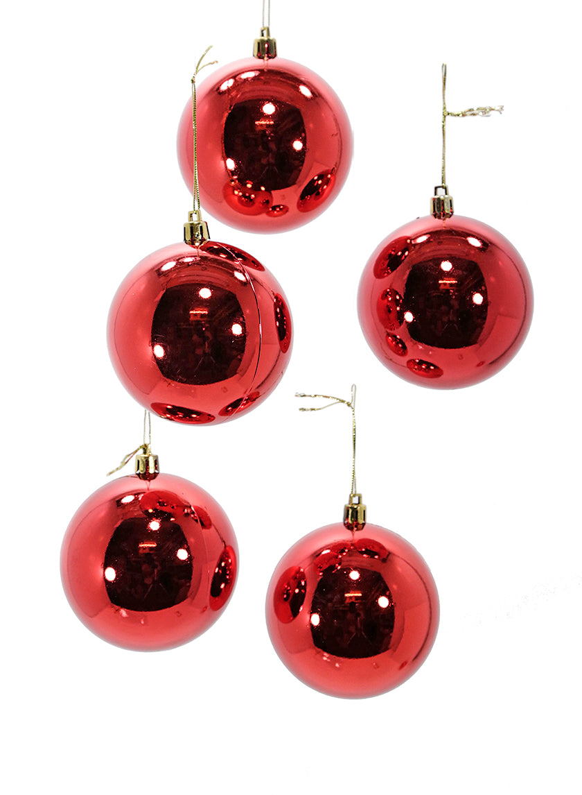 5in Round Red/Gold Durian Glitter Plastic Ball, Set of 4- Regular price