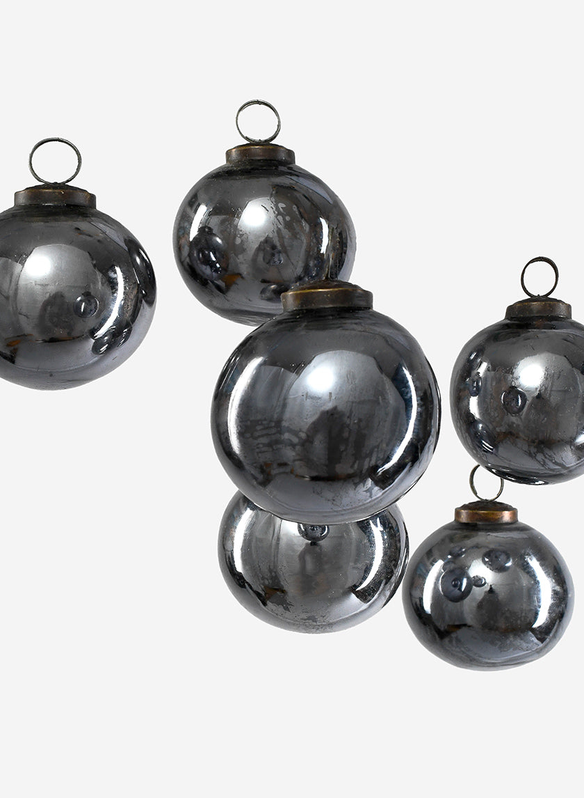 3in Round Antique Platinum Glass Ball Ornament in Window Box, Set of 6- Regular price