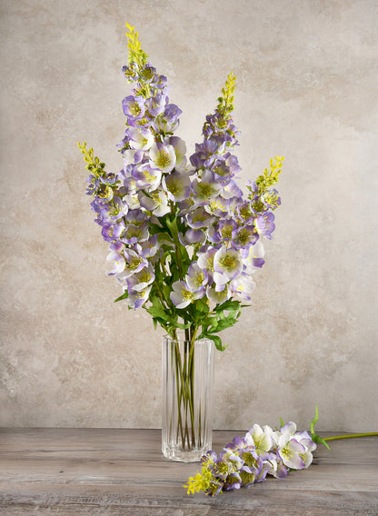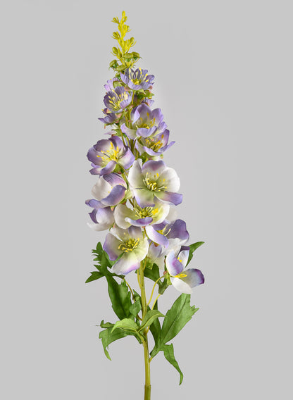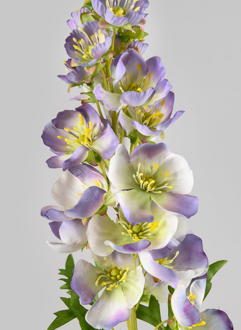 Beautiful floral stem with grace, height, and natural beauty the 33.5-inch Long Blue Delphinium radiates in any setting. Event planners, florists, and designers looking for a classic floral accent should include this because of its elegant blossoms and delicate colors.