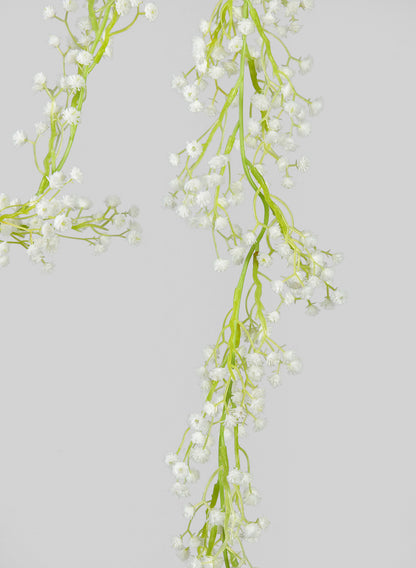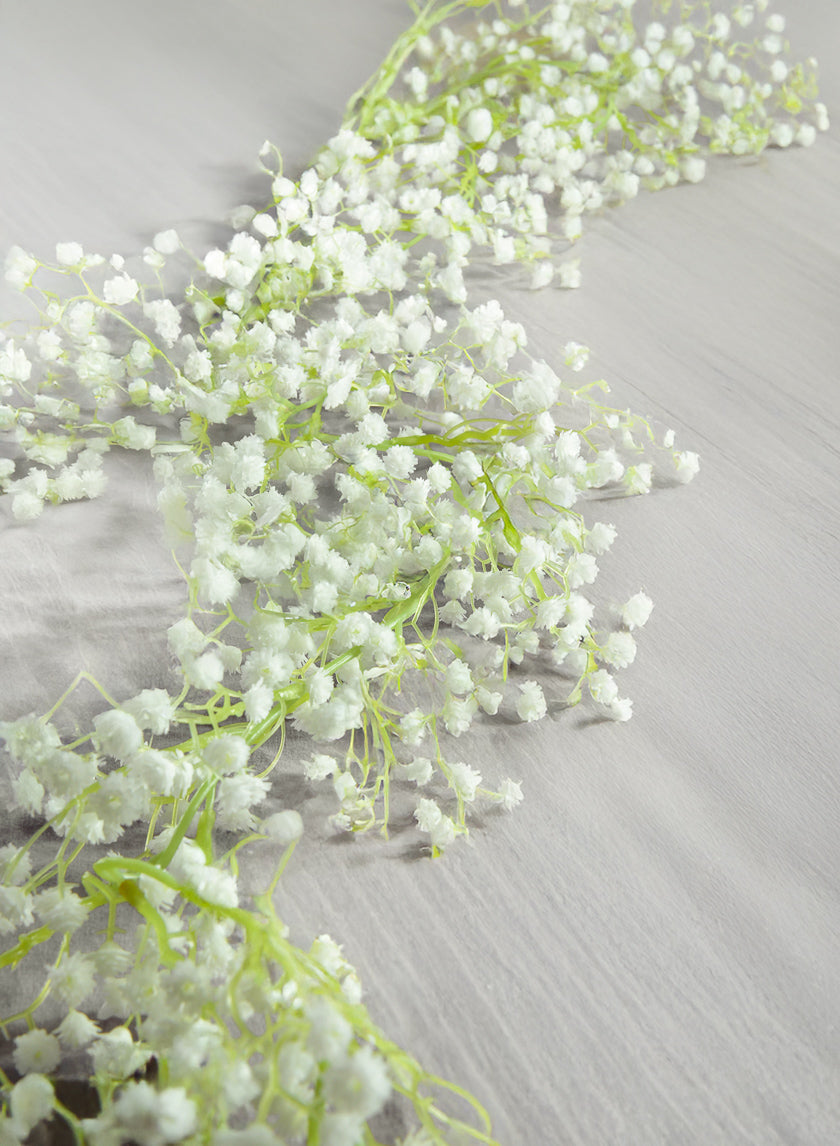 This garland features clusters of tiny, soft white flowers intricately arranged along a flexible green vine, mimicking the ethereal beauty of a real baby's breath. Its graceful design brings a sense of lightness and elegance to any setting, making it perfect for everyday decor and special occasions.