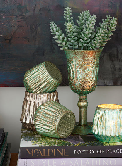 This opaque mercury glass vase complements a variety of displays and floral arrangements. Pair it with big beautiful blooms and let the metallic shimmer of the vase balance the colorful flower petals. Or, use it as a candle holder to create a rustic glam centerpiece accent. Its stylish design is just the touch you need to have a fascinating focal point your guests will be talking about.