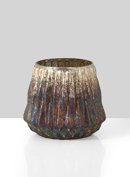 4.25in Tall Diamond Rust & Silver Glass Vase