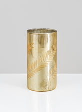 5.75in Tall Palm Etched Gold Mercury Glass Cylinder Decor Jamali Garden