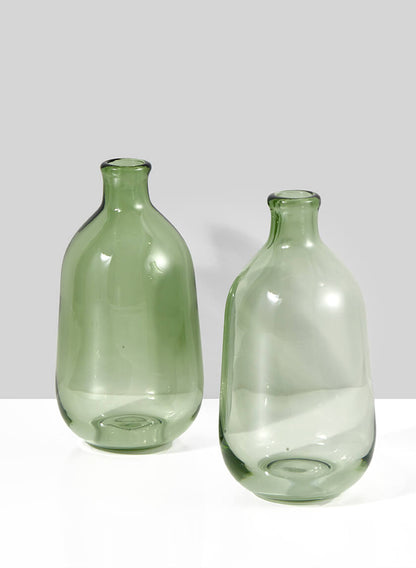 6.25in Tall Light Green Bottle Bud Glass Vase, Set of 2