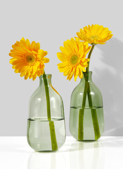 A touch of nature's beauty can light up any space with these charming bottle-shaped light green glass vases. Because of their muted hue and understated style, they are perfect for displaying delicate flowers or bringing a touch of nature.