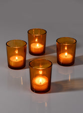 Set the mood at your upcoming special occasion, wedding, dinner party, restaurant, bar, or lounge with these amber votive candle holders. Pair them with our dark amber votive holders to add depth and interest to certain areas at your event. You can also style them with other colors of tea light votives like white and red to create a rustic centerpiece perfect for autumn. You might place them around your biggest flower arrangements for an extra dash of fiery flair, too.