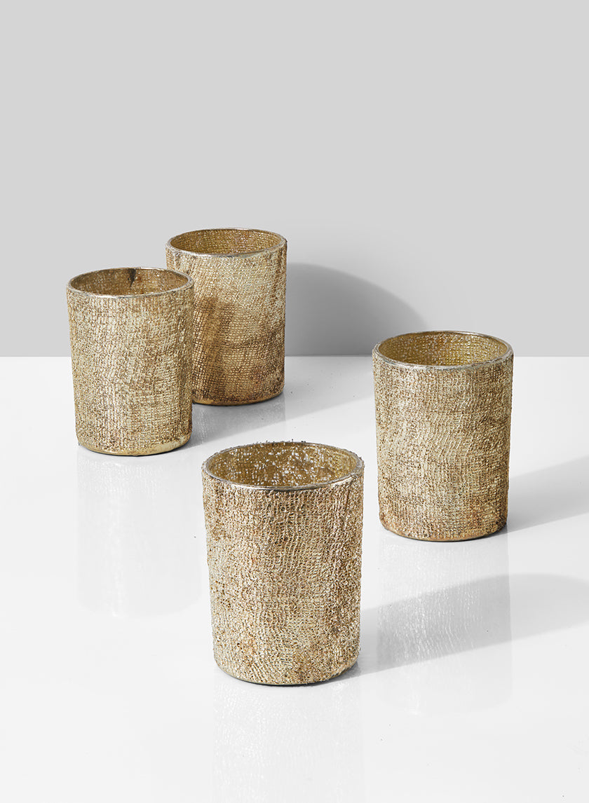 3in Tall Ombre Gold Frost Glass Votive Holder, Set of 6