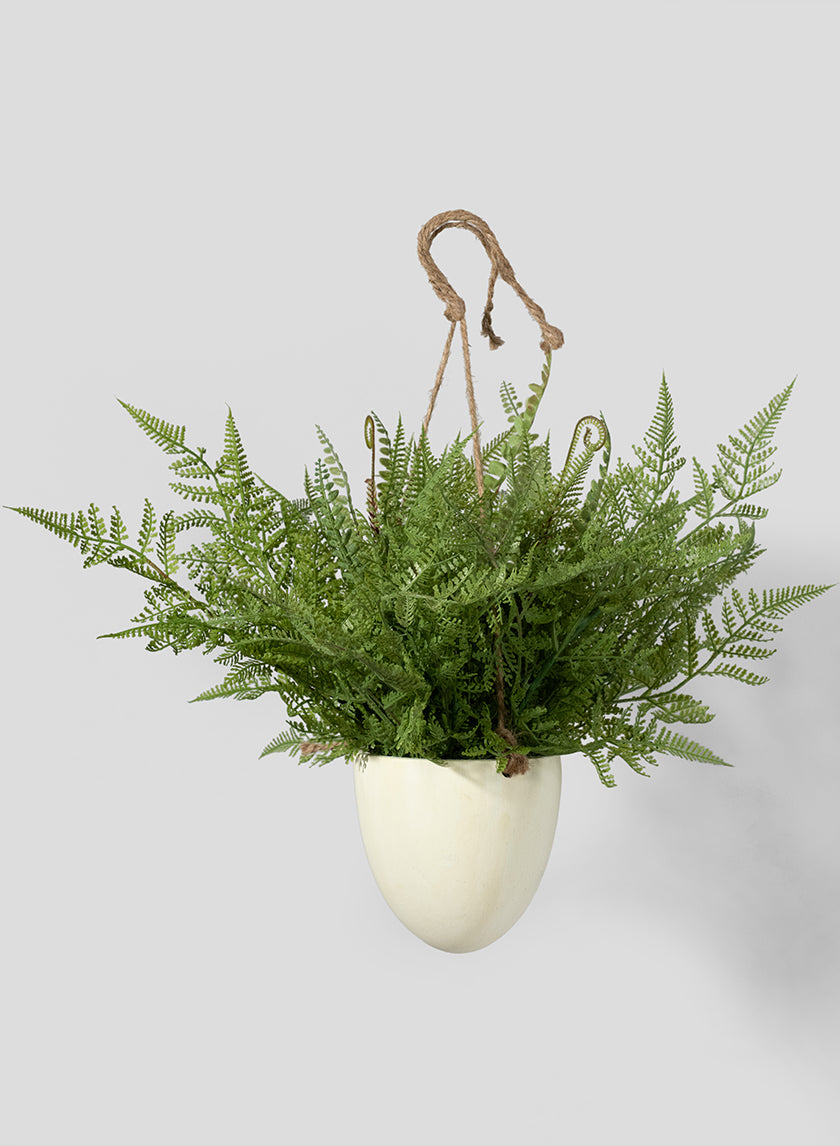 A classic houseplant that has gained popularity in modern and contemporary decor because of its versatility. Placed on a high shelf or atop a pedestal, this faux fern shows off its incredibly life-like fronds of feathery leaves.